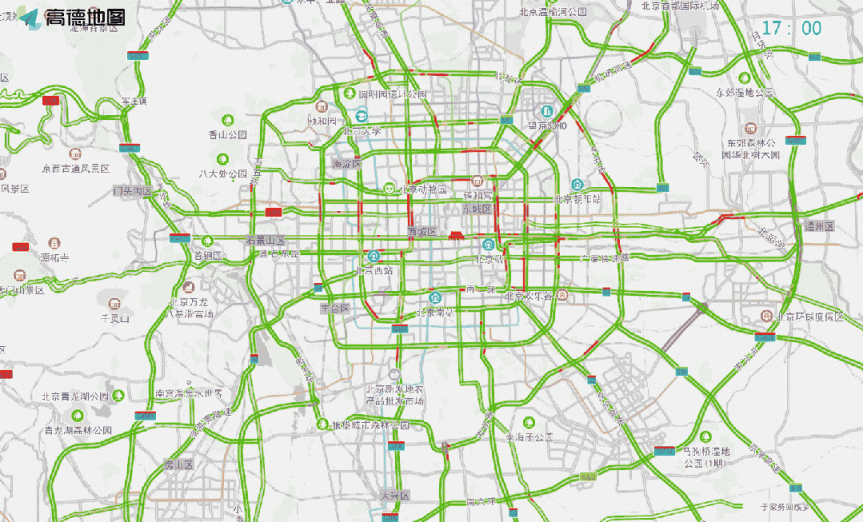 工作日早晚高峰期间,城区环路部分路段、菜户营南路、通惠河北路、西直门北大街、德胜门外大街、建国门外大街、圆明园西路至万泉河路、京通快速、阜石路、莲石东路、学院路等道路车流集中,京藏、京承、京港澳、机场等高速公路将出现早高峰进京、晚高峰出京的潮汐车流。